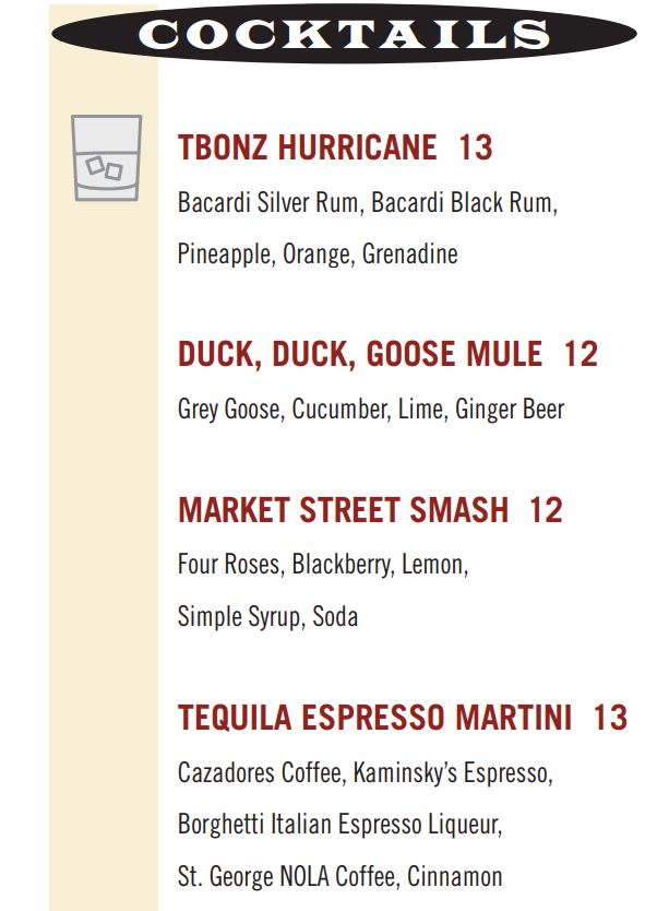 Gluten Free option available - These items can be altered to be gluten friendly TBonz is not a gluten free environment. Our menu items are handcrafted in our kitchens, oftentimes using shared equipment (including common fryers) and variations in vendor-supplied ingredients may occur. For these reasons, we cannot assure you that any menu item will be entirely gluten free. <br>