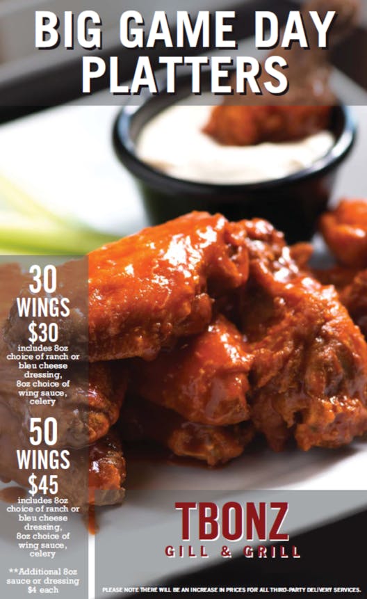 includes 8oz choice of ranch or bleu cheese dressing, 8oz choice of wing sauce, celery