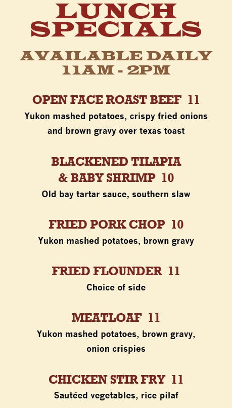 Our original seafood breader, cocktail sauce, french fries, southern slaw