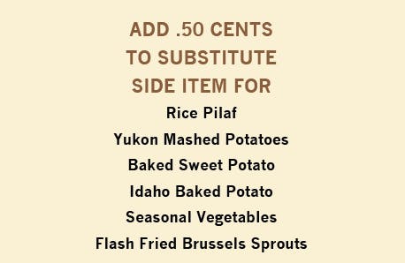 Citrus dill compound butter, rice pilaf, seasonal vegetable. Gluten free option available